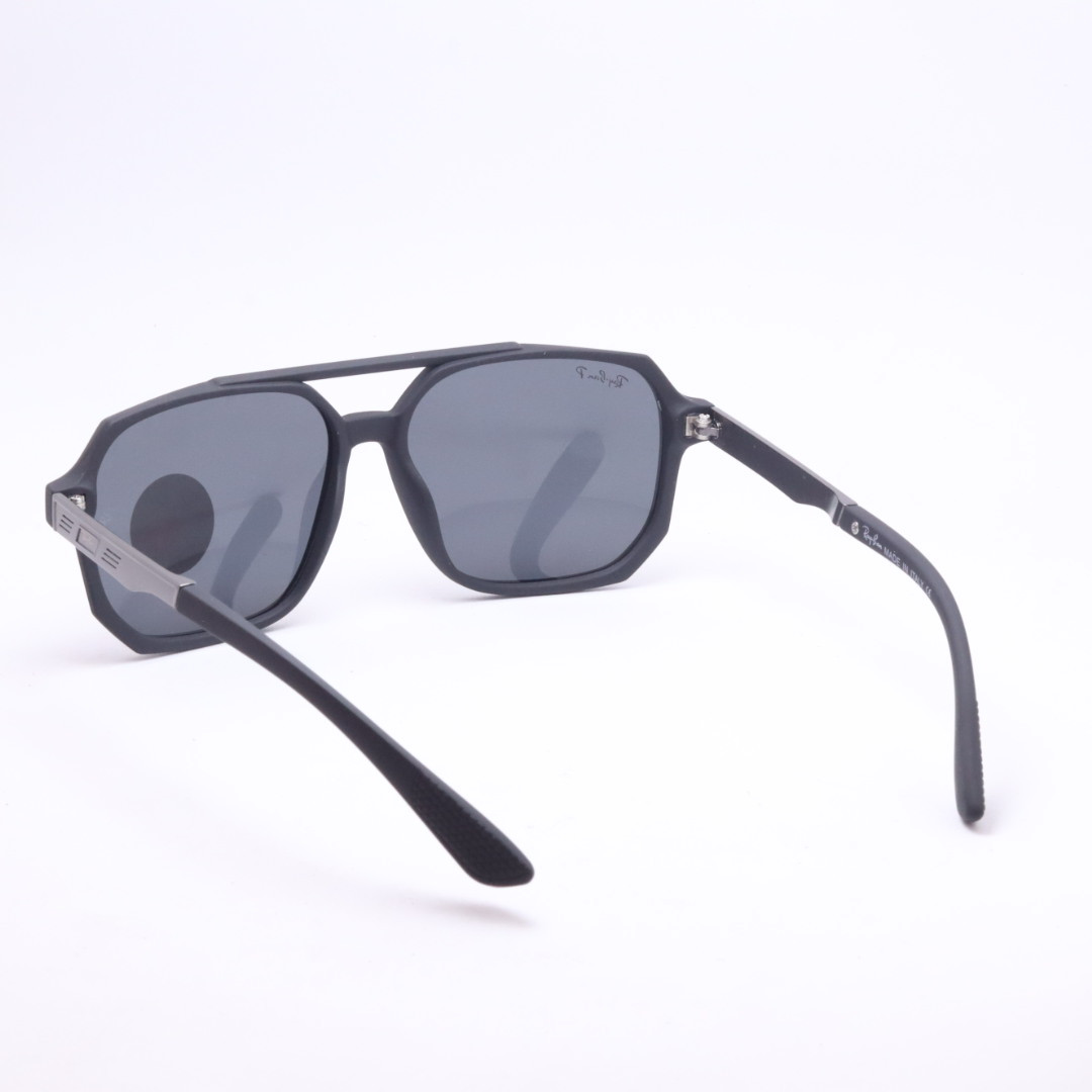 Polarized Matt Black Double Bar Square Sunglasses For Men